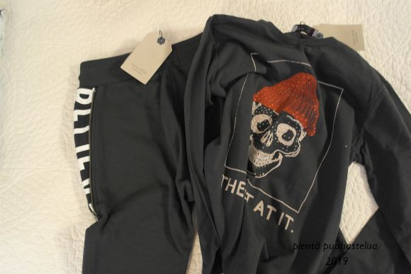 Vaatteet joululahjaksi ostin Tallinnan matkalta Zarasta. Poikani viihtyy rennoissa housuissa, jotka eivät saa kiristää yhtään, ja näissä oli hienot yksityiskohdat bonuksena.